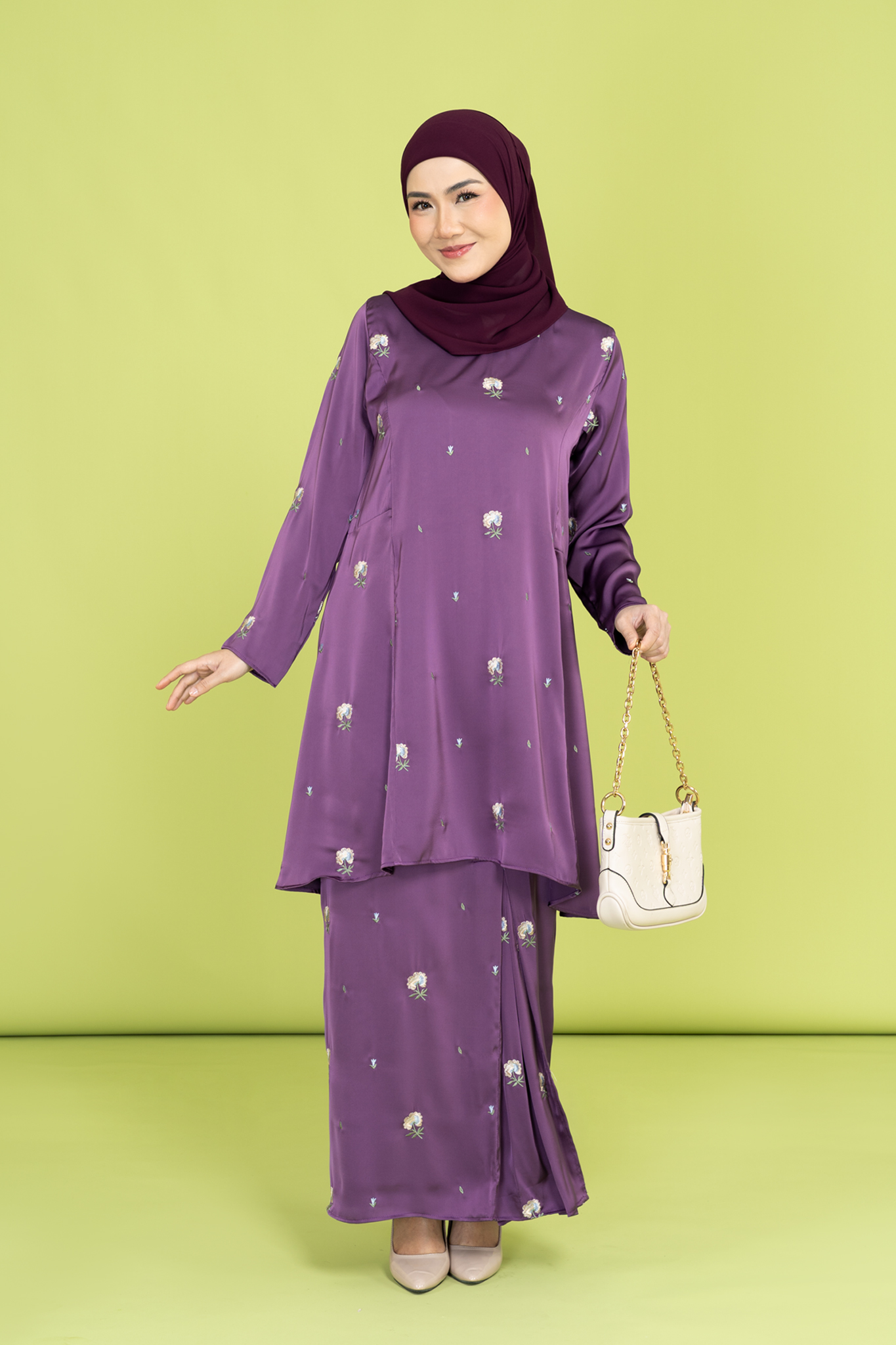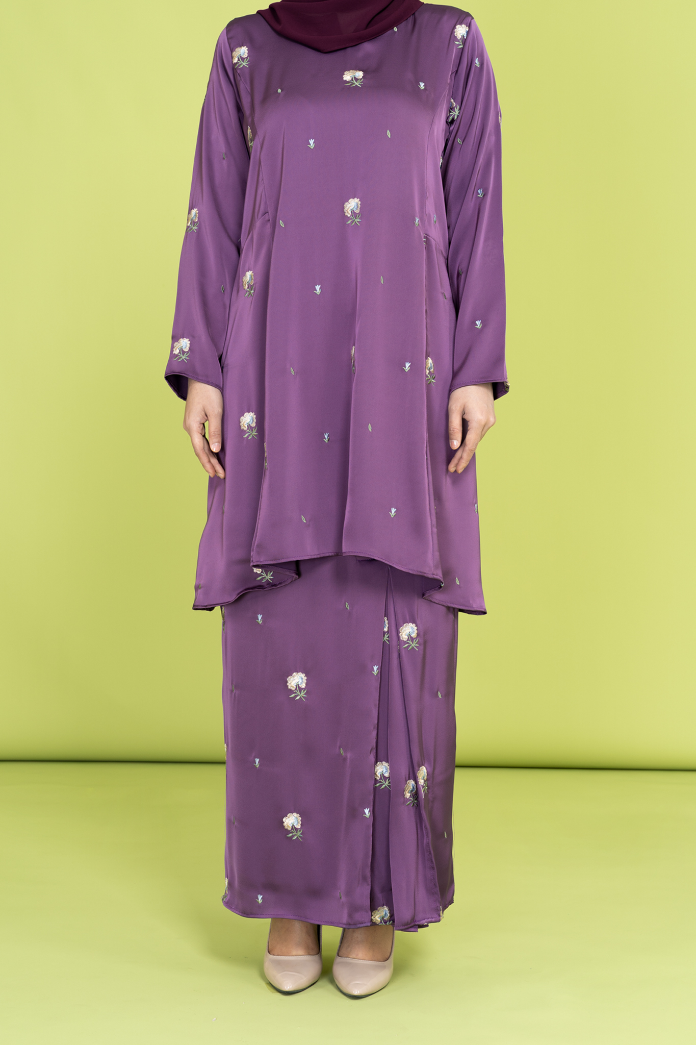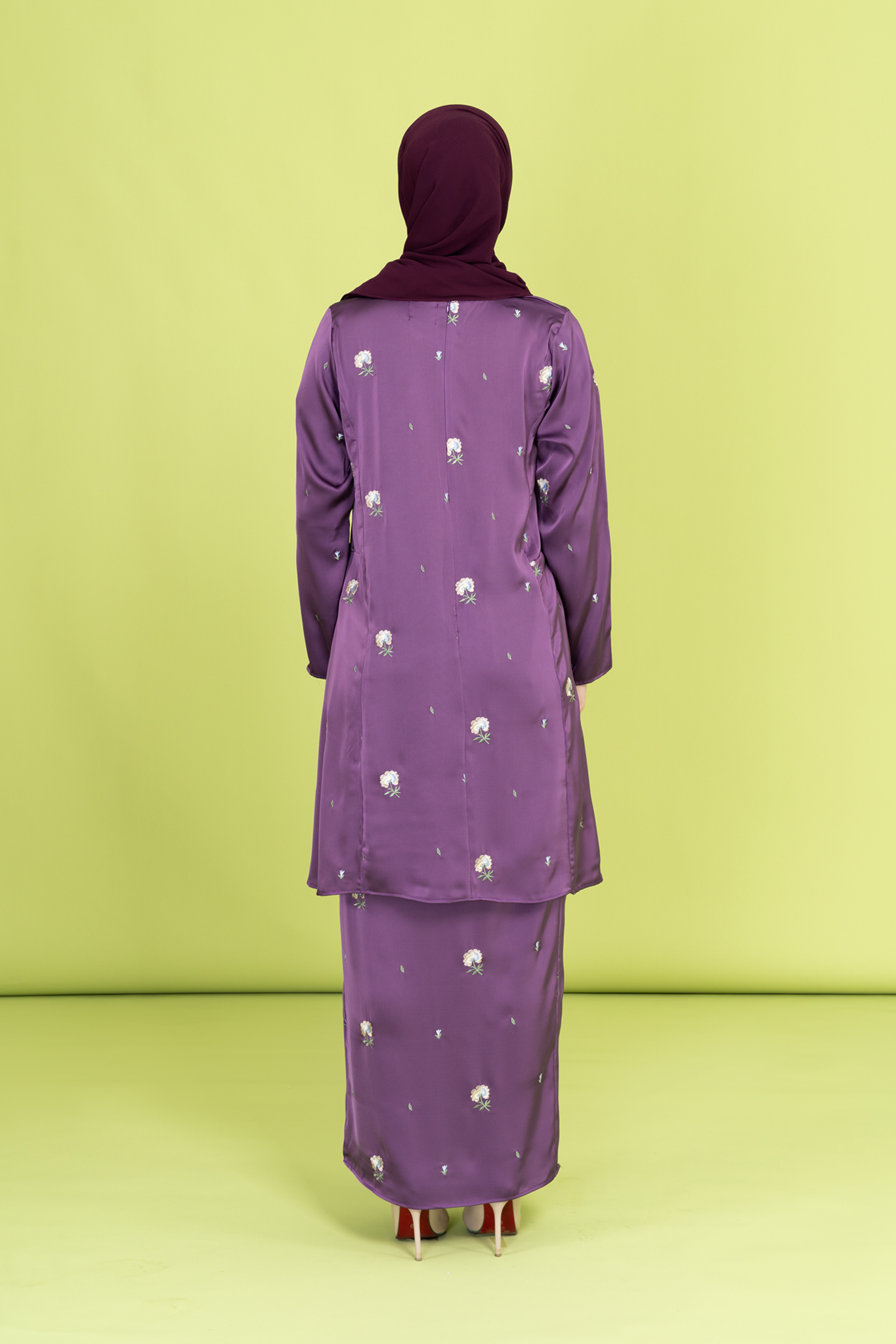 Juliana Embroidered Pahang Kurung in Dusty Purple