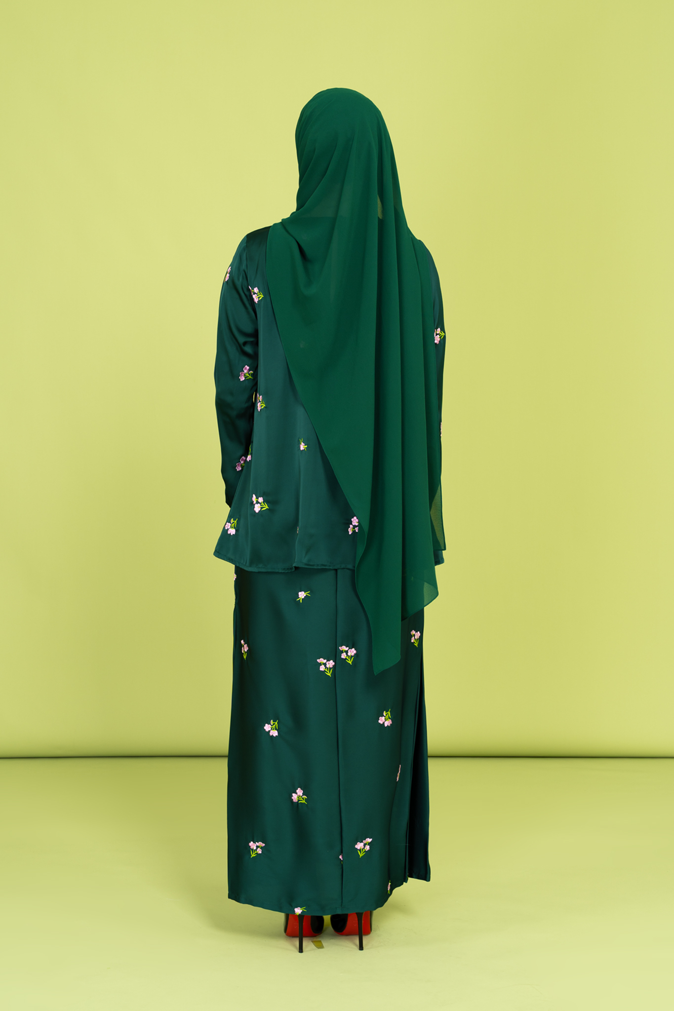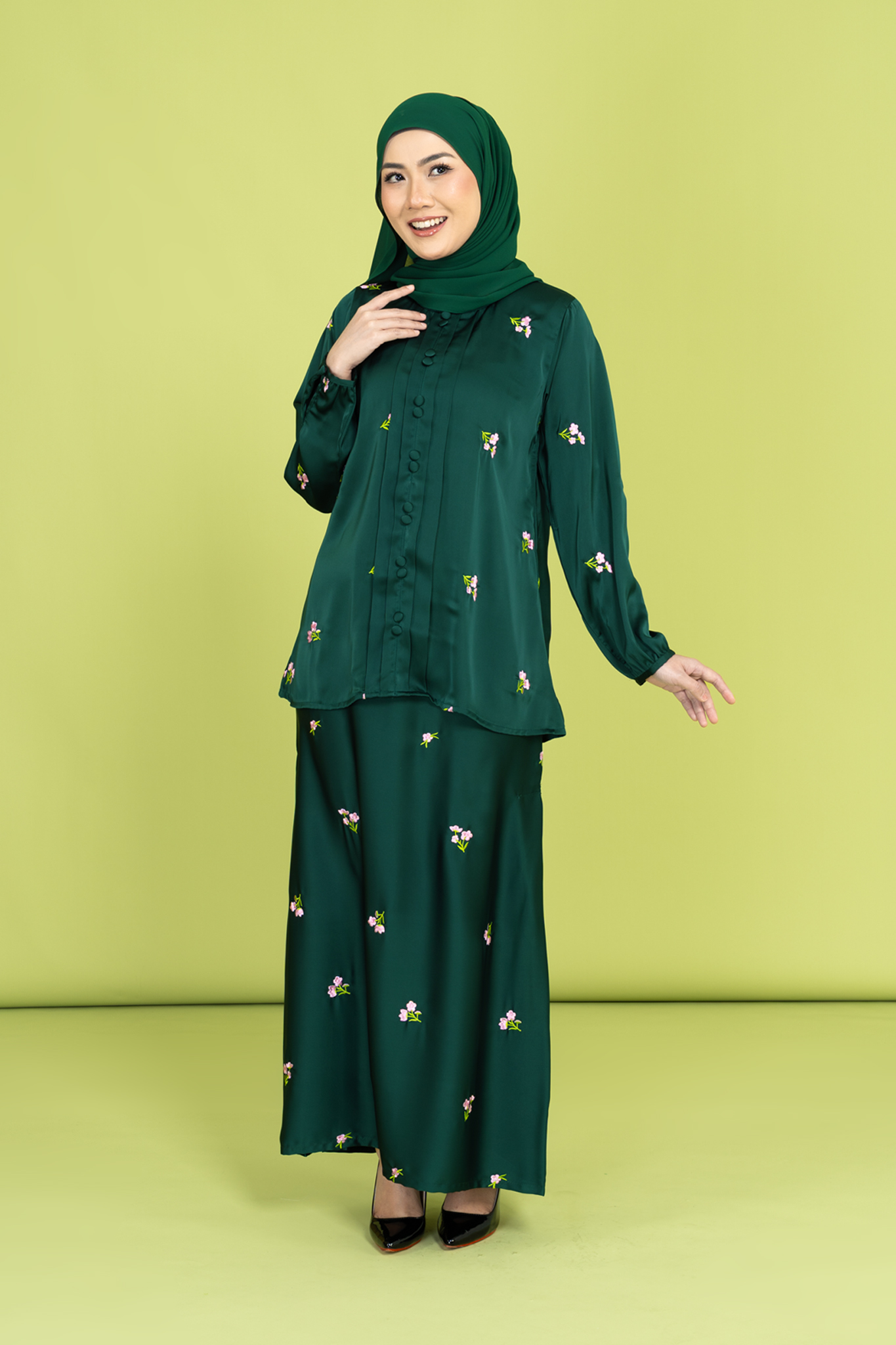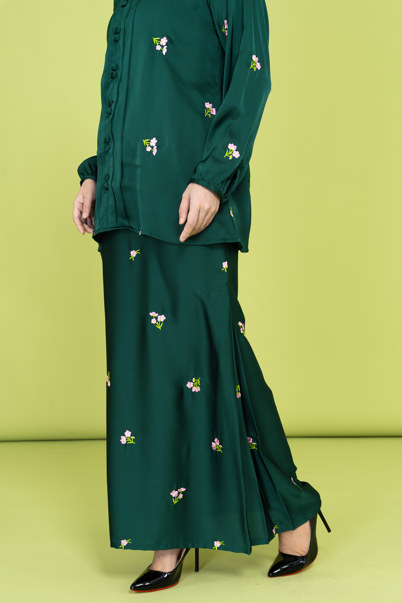 Melissa Embroidered Kebaya Set in Emerald Green